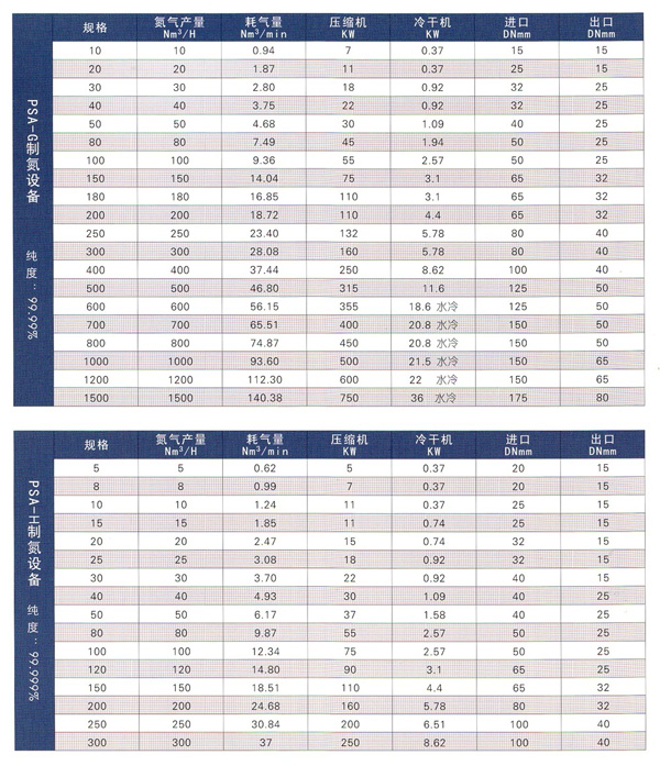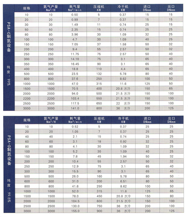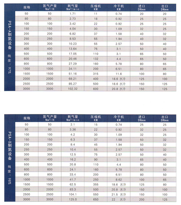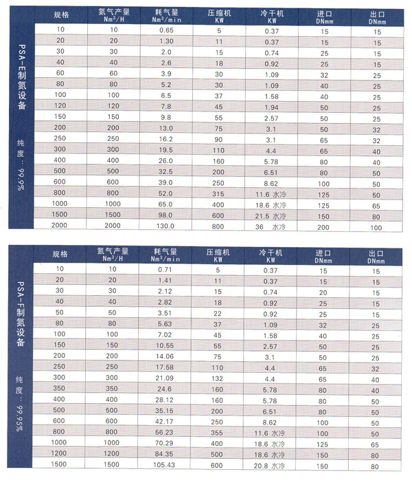 制氮機(制氮設(shè)備)技術(shù)參數(shù)